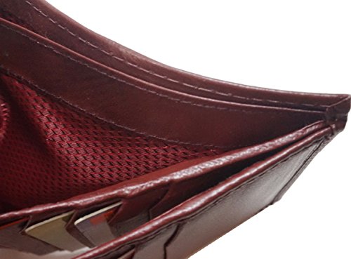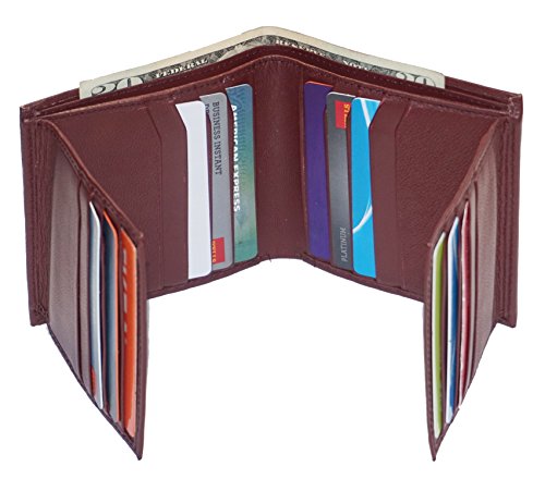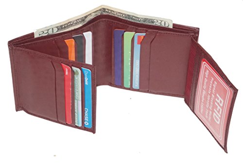 Product Description Made of Genuine soft cow leather bifold men wallet. Holds 16 credit card and 2 ID window with bills compartment. RFID Signal Blocking security wallet which secure all your identity from electronic pick-pocketing. Best for daily use. 0
