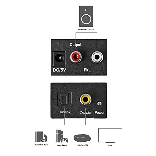 TNP Digital to Analog Audio Converter Box Adapter - Converts Optical Coaxial or SPDIF Toslink Signal to Stereo RCA L/R (Red/White) Sound Signal
