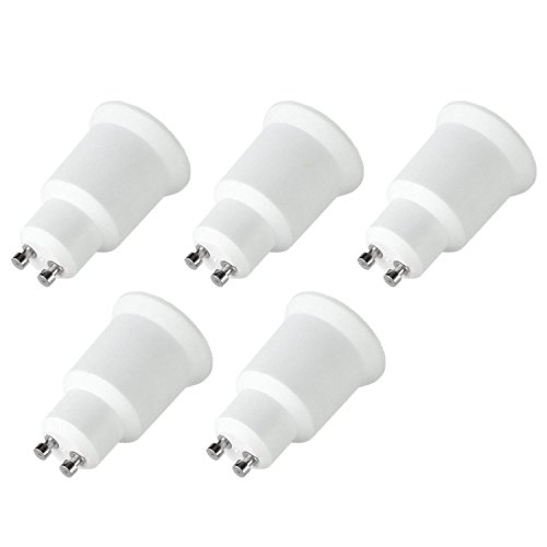5-Pack Gu10 to E27/E26 Adapter JACKYLED 2 Pin Bayonet(Gu10) Base to Medium Screw(E26/E27) Base Lamp Socket Converter Maximum Wattage 1000W 200℃ Heat Resistant No Fire Hazard