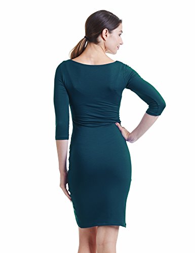 A tulip style design stretch knit dress with a V-neckline / 3/4 sleeves