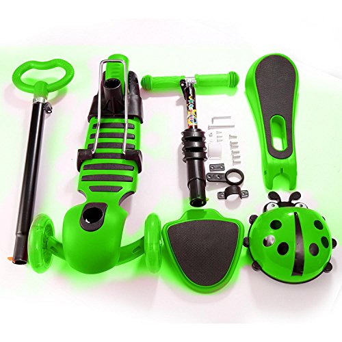-. Title : Lantusi Child Kids Detachable Riding Toy, 3-Wheel Adjustable Height Kick Scooter with LED Light Up Wheels (Pink, Green and Blue)