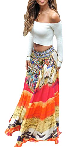 -. Title : (ビグッド)Bigood エレガント リゾートスカート レディース ロングスカート マキシ丈スカート カジュアル 海 ビーチ(レッド)