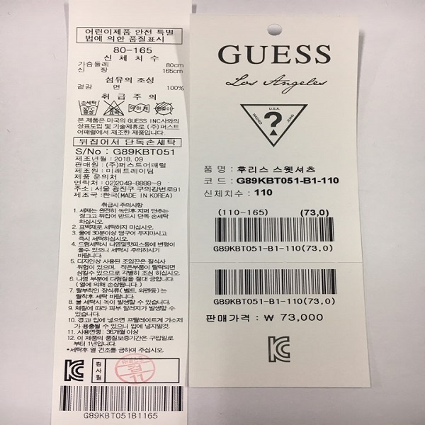 제조자 : 퍼스트어패럴