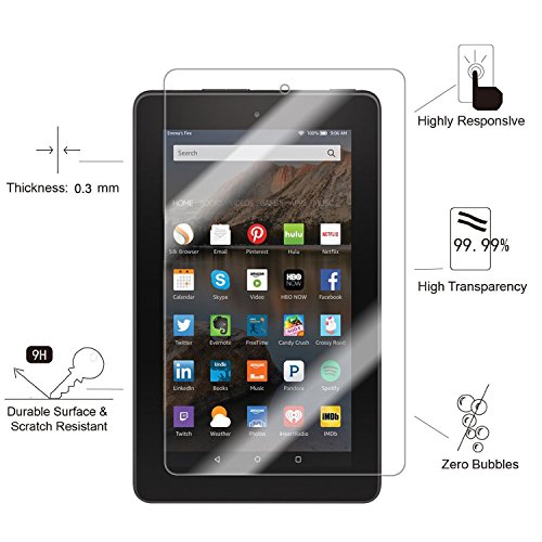 -. Feature : Specially designed for Amazon Fire 7.0 inch[2015 Release]. / 99.99% High-Definition and Maintains the Original Touch Experience.Oleophobic screen coating protects against sweat and oil residue from fingerP.R.Ints. / 9H Hardness Scratch resistant screen protector can effectively protect you Pad from unwanted scuffs and protect scratches by knife, keys and some other hard substances.If broken, tempered glass breaks into small pieces that are not sharp, making it safer than other glass products / Hassle free and bubble free,Adhesives for easy installation,Precise cut and design, automatically attach to the screen smoothly. / If the item you have received is defective in any way,please email us for replacement or refund(Red Lemon provide you lifetime warranty.)