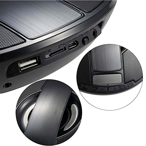 -. Feature : Supports high-quality FM radio; Support Micro SD Card / TF card insert and play; Also Support USB input. / With LCD display, shows time and FM radio and Bluetooth Status as well as battery level. / With alarm clock function in On / Off States, you could set the alarm ring via choosing music from USB / TF Card. / Built-in microphone for hands-free function, offers you wonderful wireless music and set your hands from answering the incoming calls. / Besides Bluetooth source, The SDY021 Speaker can also play audio from 3.5mm-jack audio devices (such as, cell phones, tablet PC, PC, MP3, MP4, etc) and almost all formats of audio file from TF card / SD card and USB storage device via the sockets at the rear side of the speaker. Play / pause, adjusting the volume, previous/next songs, answering / rejecting / ending an incoming call and redialing the last number can be done on the button or from your smart phone wirelessly.