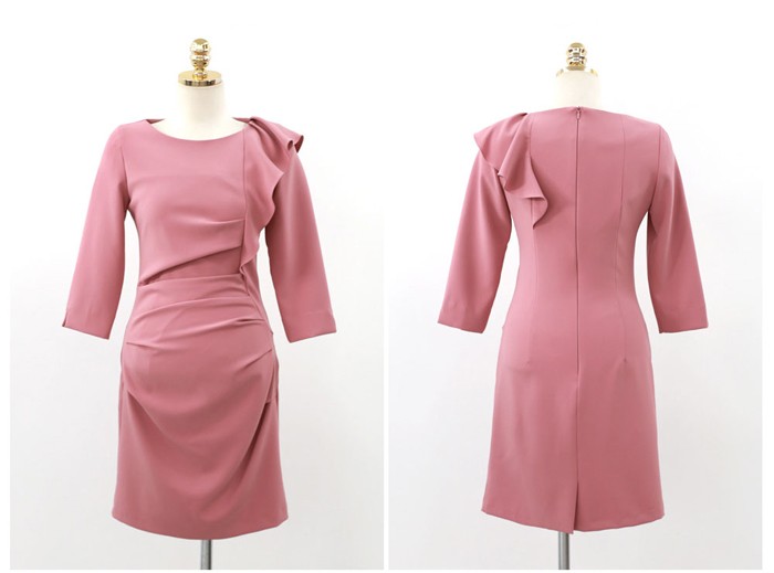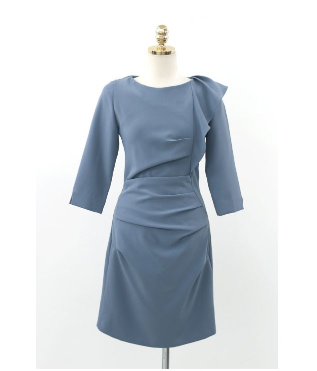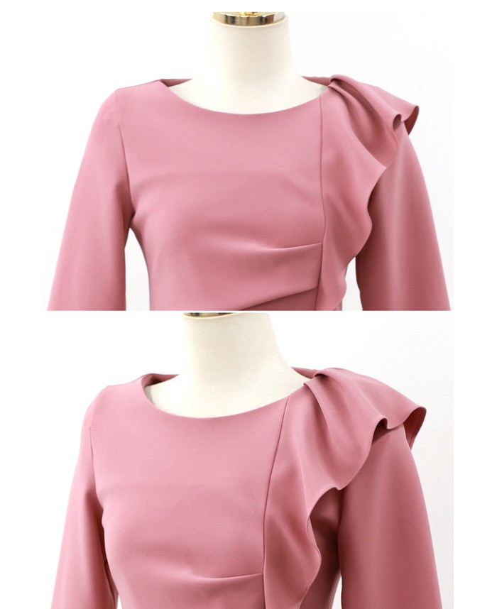 商品名:ワンピース 無地 フリル ミニ丈 タイトワンピース