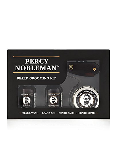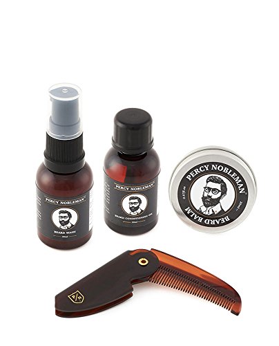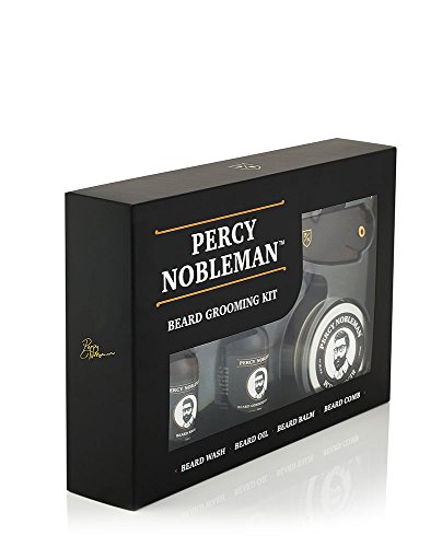 Percy Nobleman Beard Grooming Kit Bundle with Beard Oil, Wash, Wax and Comb Set for Men