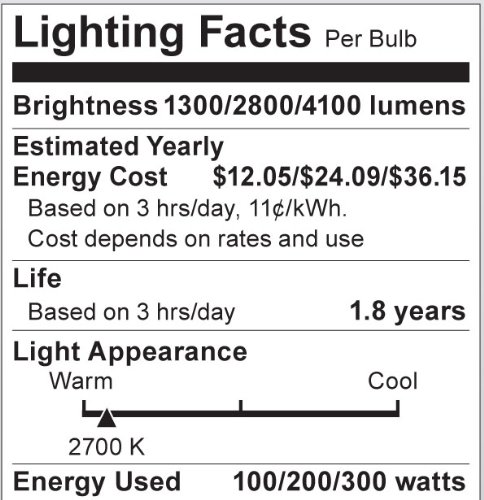 Satco S1826 120-Volt 100/200/300 PS25 3 Contact Mogul Base Light Bulb, Frosted