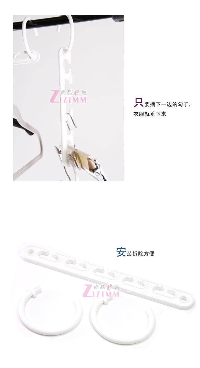 Just off the side of the hook? hanging clothes? like magic? like 10 now only three pieces of clothing clothes space? there are two magic stand two universal joints? rotating flexible? very easy to pick up clothes. If you use magic in the outdoor clothes drying rack? put the two hanging hook contrary? can prevent wind down.