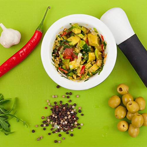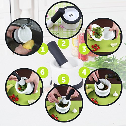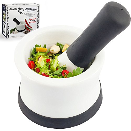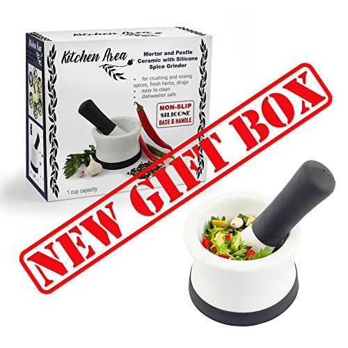 Kitchen Area Mortar and Pestle – Ceramic with Silicone Spice Grinder and Guacamole & Salsa Maker - Non-Slip Base, Dishwasher Safe - for Crushing and Mixing Spices, Fresh Herbs, Drugs