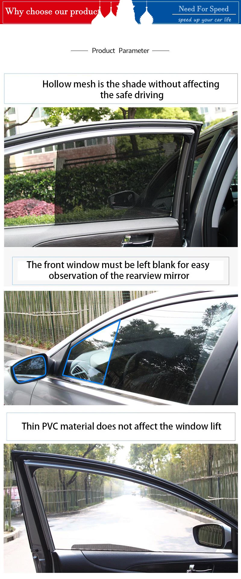 Car window sun shade cover feature:Sun shade, does not affect the window lift