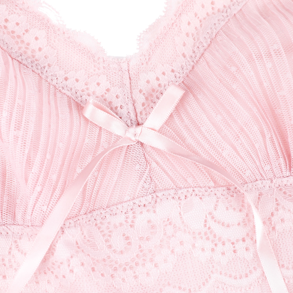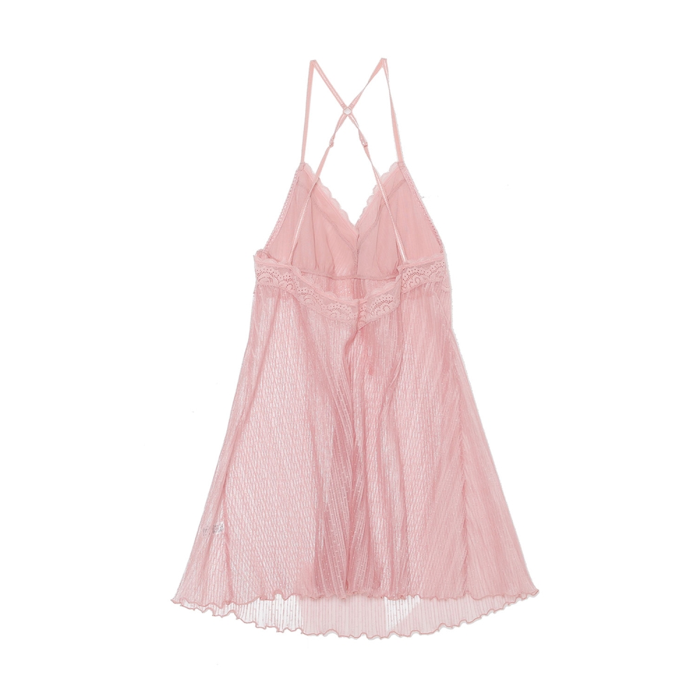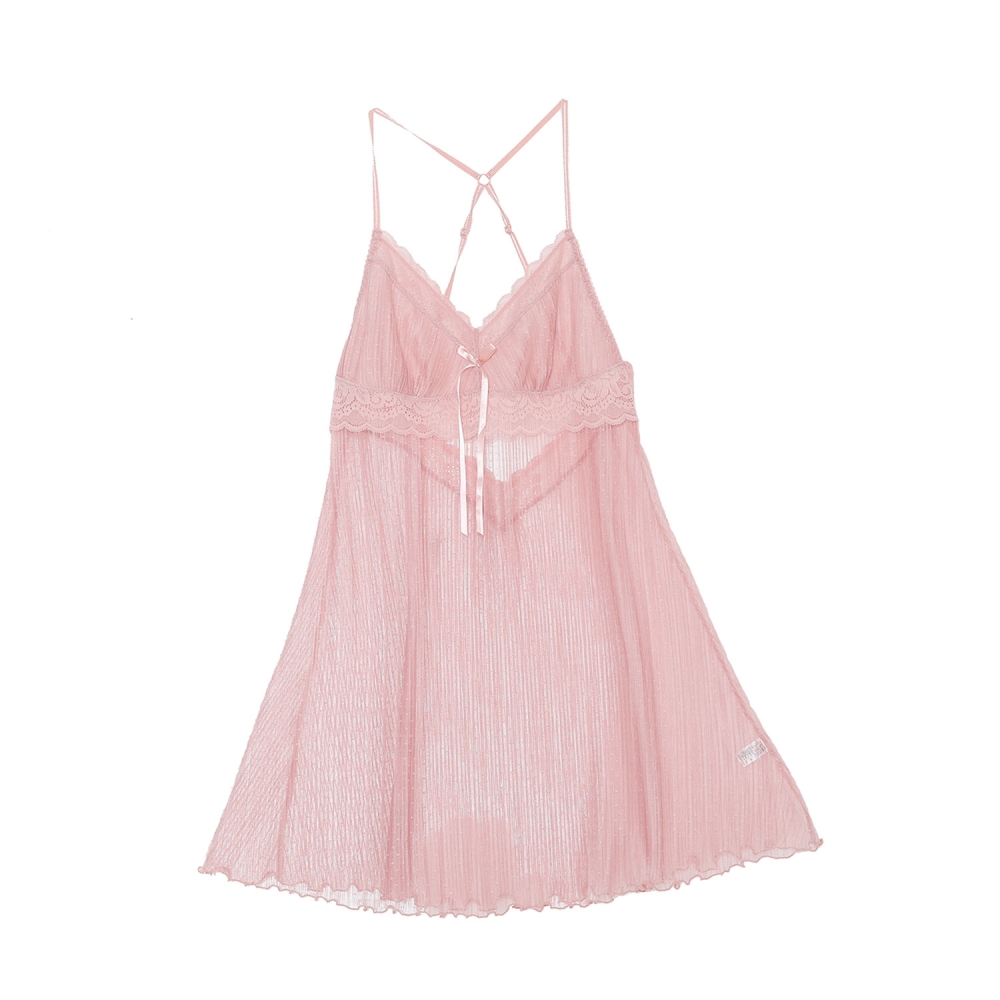 도트망의 주름지가 컵과 스커트에 쓰이면서 더욱 사랑스러운 느낌의 슬립.