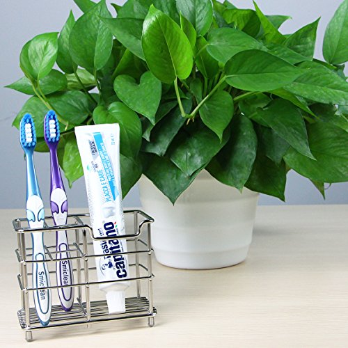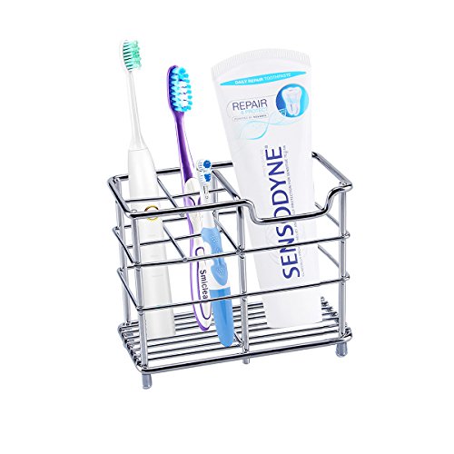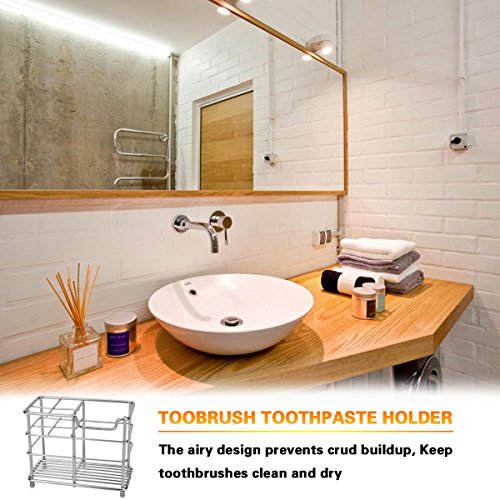Toothbrush Holder, Aiduy Toothpaste Holder Stand Bathroom Storage Organizer Rack for Vanity Countertops - Stainless Steel
