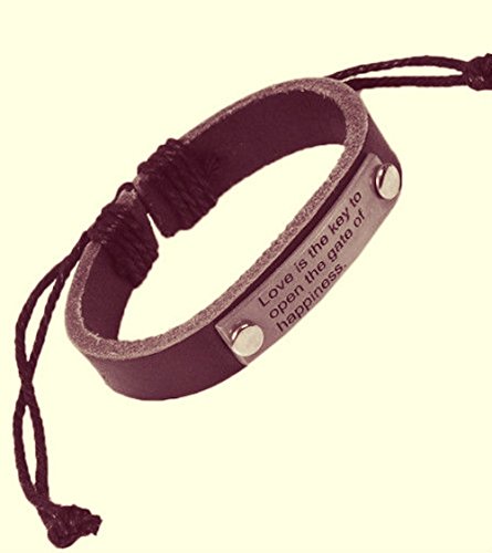 Lovers' Engraved Leather Bracelet "Love is the key to open the gate of happiness" Best Friends Letter Bracelets/Diffuser Leather/Diffuse Essential Oils like Young Living