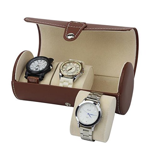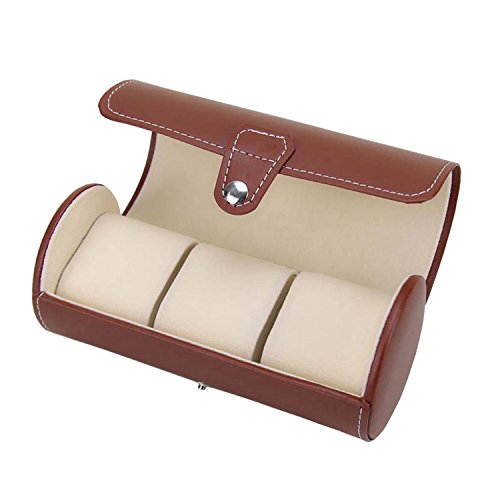 Watch Box 3 Slots Watch Case PU Leather Watch Box Organizer for Men Women Travel Jewelry Storage Case Organizer Brown