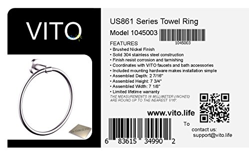 VITO US861 series stainless steel towel ring brushed nickel finish