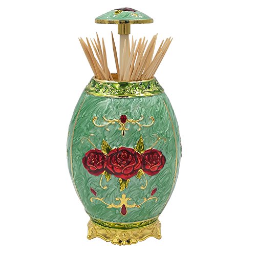 [Unique Shape]:Decorative Egg Shaped Automatic Toothpick Holder with Elegant Rose Pattern