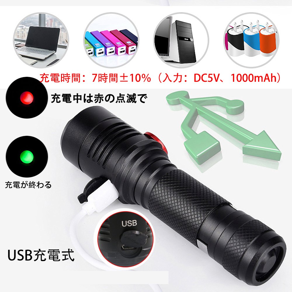 A convenient rechargeable flashlight that allows you to charge while you are moving by preparing a USB port.