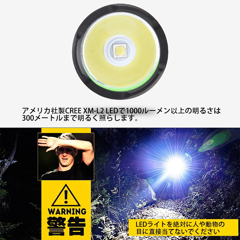 With the American company CREE XM - L2 LED, the brightness of 1200 lumens or more illuminates brightly up to 300 meters.