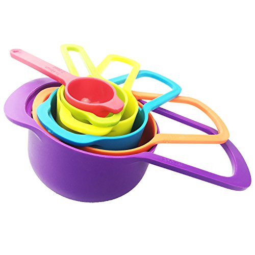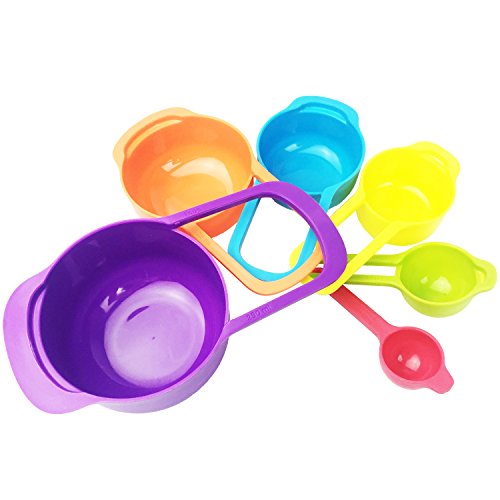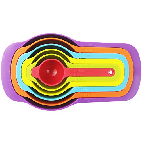 Plastic Measuring Spoons and Cups, Stackable and Nested Mixing Cups, Measuring Tools Set for Baking and Cooking, Multicolor, 6 Pcs