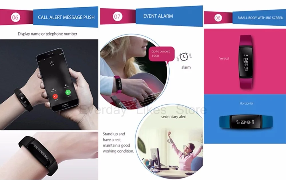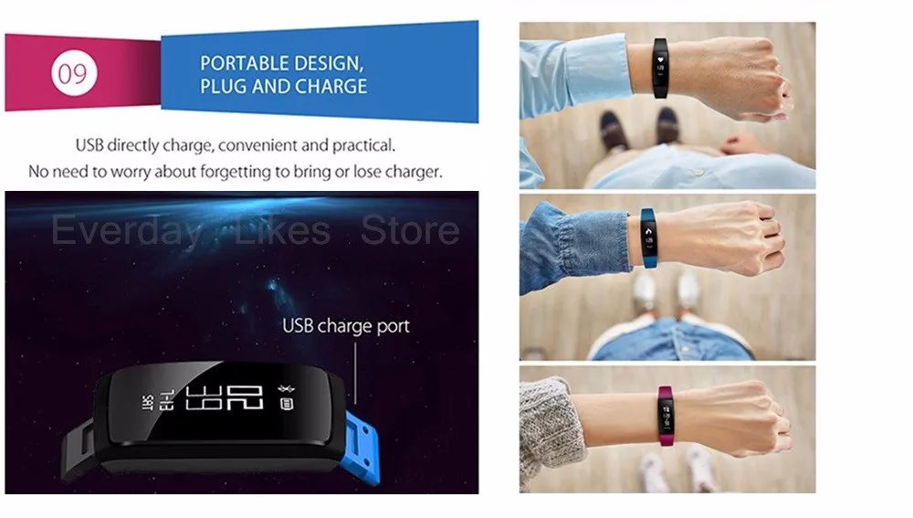 Function:Message Reminder,Passometer,Alarm Clock,Fitness Tracker,Call Reminder,Sleep Tracker,Heart Rate Tracker