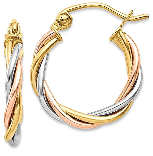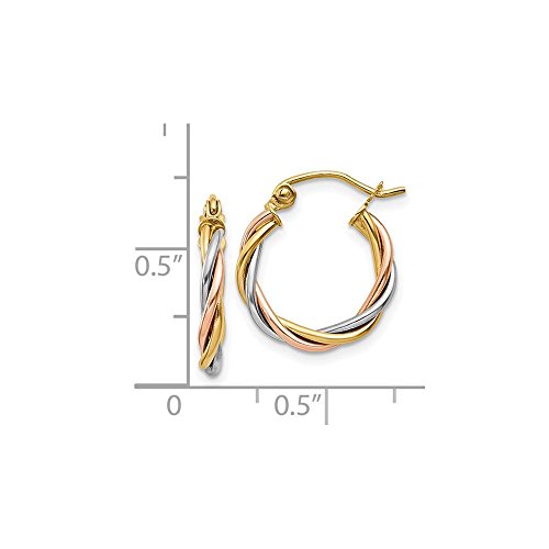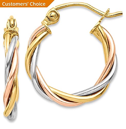 ICECARATS DESIGNER JEWELRY 14K TRI COLOR YELLOW WHITE GOLD 2.5MM TWISTED HOOP EARRINGS EAR HOOPS SET FOR WOMEN
