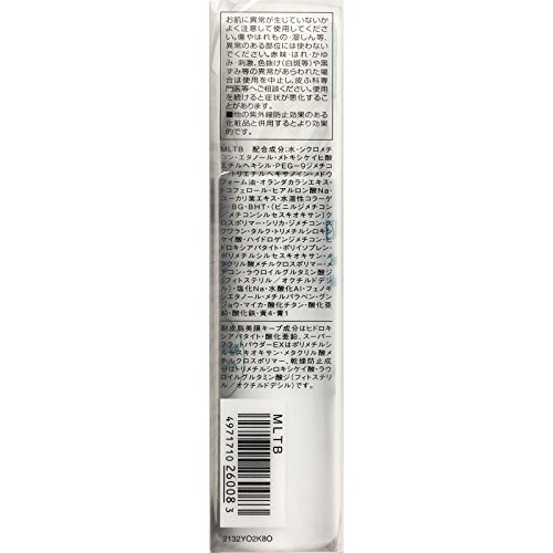 <配合成分> 水、シクロメチコン、エタノール、メトキシケイヒ酸エチルヘキシル、PEG-9ジメチコン、トリエチルヘキサノイン、メドウフォーム油、オランダカラシエキス、トコフェロール、ヒアルロン酸Na、ユーカリ葉エキス、水溶性コラーゲン、BG、BHT、 (ビニルジメチコン/メチコンシルセスキオキサン) クロスポリマー、シリカ、ジメチコン、スクワラン、タルク、トリメチルシロキシケイ酸、ハイドロゲンジメチコン、ヒドロキシアパタイト、ポリイソプレン、ポリメチルシルセスキオキサン、メタクリル酸メチルクロスポリマー、メチコン、ラウロイルグルタミン酸ジ (フィトステリル/オクチルドデシル) 、塩化Na、水酸化Al、フェノキシエタノール、メチルパラベン、グンジョウ、マイカ、酸化チタン、酸化亜鉛、酸化鉄、黄4、青1