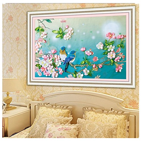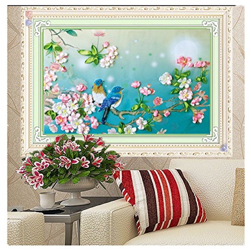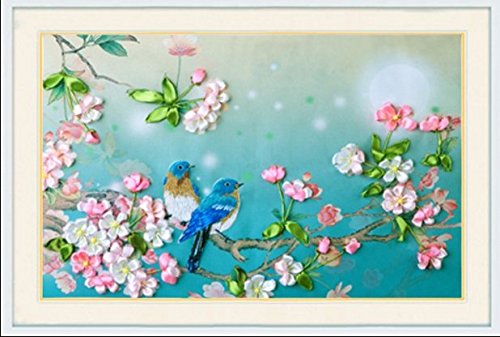 Egoshop Ribbon Embroidery Kit singing birds DIY Wall Decor Ribbon Embroidery Kit With English Instruction