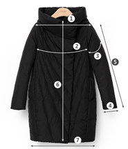 尺码 ①肩宽 ②胸围 ③上臂围 ④袖口围 ⑤袖长 ⑥后中长 ⑦下摆围