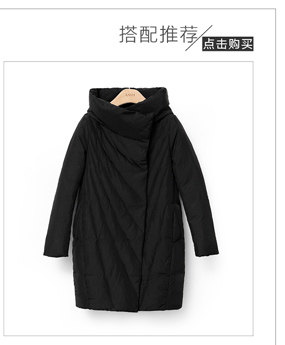 侧门襟高领连帽羽绒服,