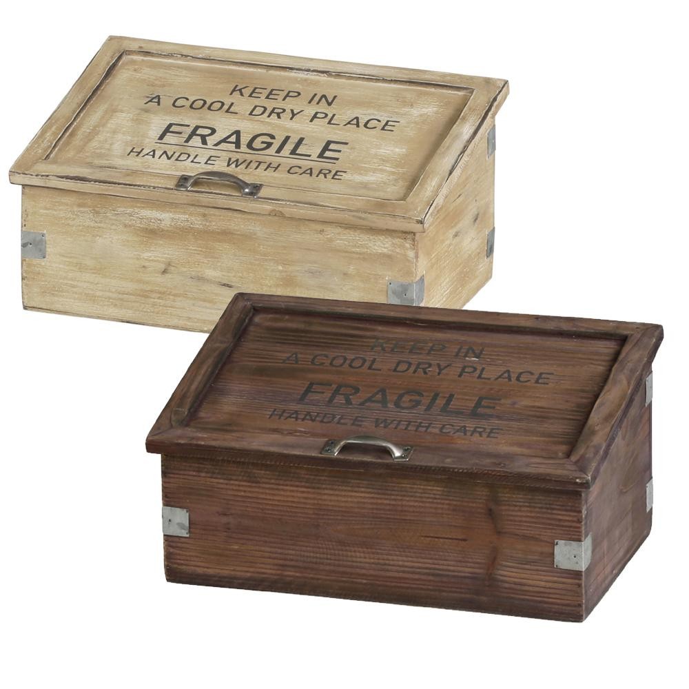 | 外国でドリンクボトルなどを入れていた、ヴィンテージ風の木箱をアレンジしたイメージの木製ケースです。小物類を片したり植物を飾ったりと幅広くお使いいただけます。プリントされているFRAGILE HANDLE WITH CAREとは、壊れ物につき取扱注意という意味です。 |