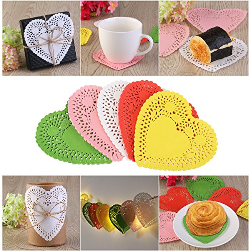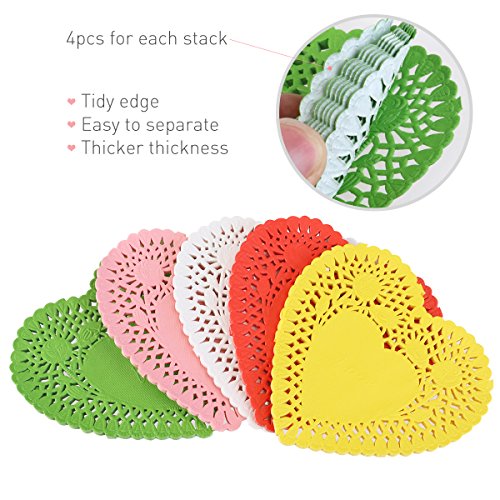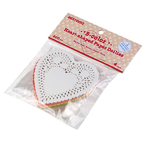 BESTOMZ Heart Doilies 4" Lace Doilies Pack of 200 - Color Including Red Pink White Yellow and Green