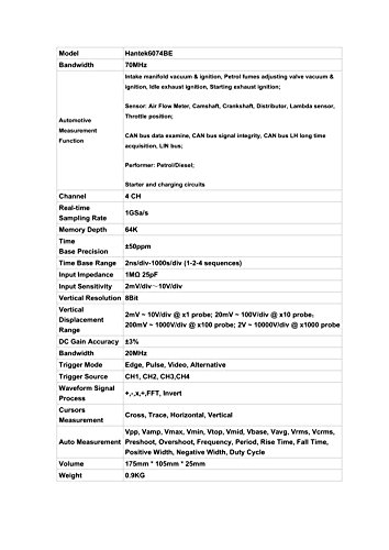 Hantek DSO6074BE 4 Isolated Channels 70MHz Oscilloscope 1GSa/s With Automotive Measurement Function
