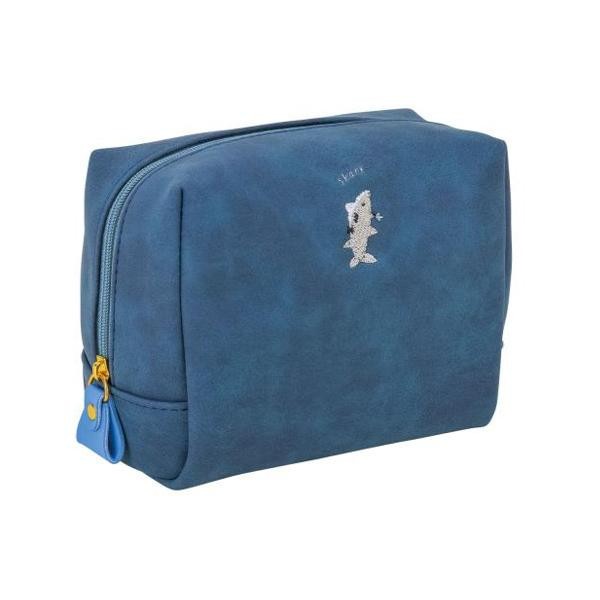 ゆるくて楽しい雰囲気の、ユニークなキャラクターの刺繍がかわいいポーチです。頭のパーティー帽子をイメージした、三角のチャームがアクセントになっています。四角い形と幅広のマチでたっぷり大容量なので、メイクポーチなどに使っても取り出しやすくおすすめです。 |