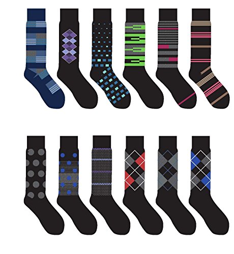 -. Title : 12 Pairs Men's Polka dot Argyle Stripes Fancy Design Dress Socks, sock size 10-13