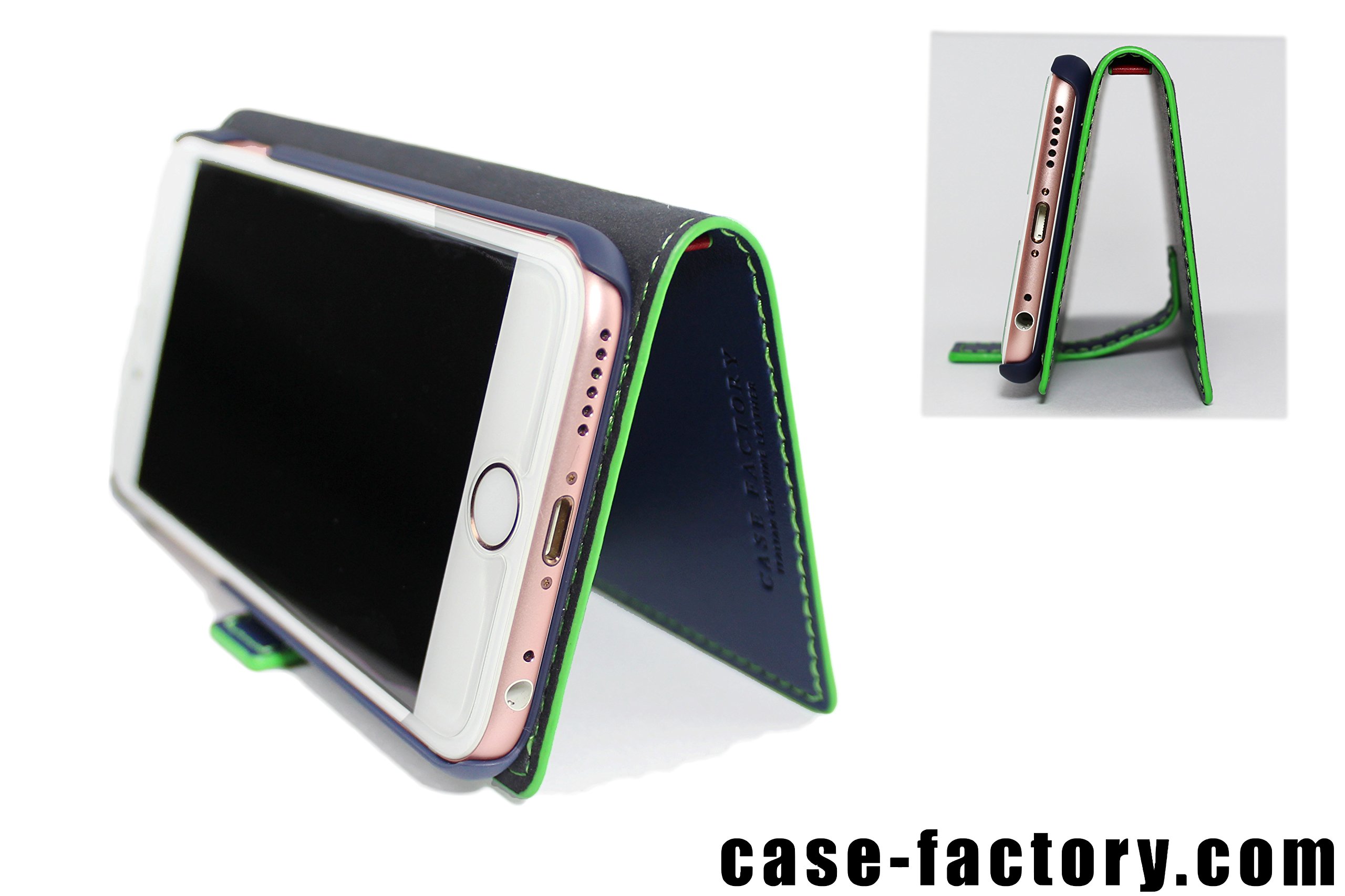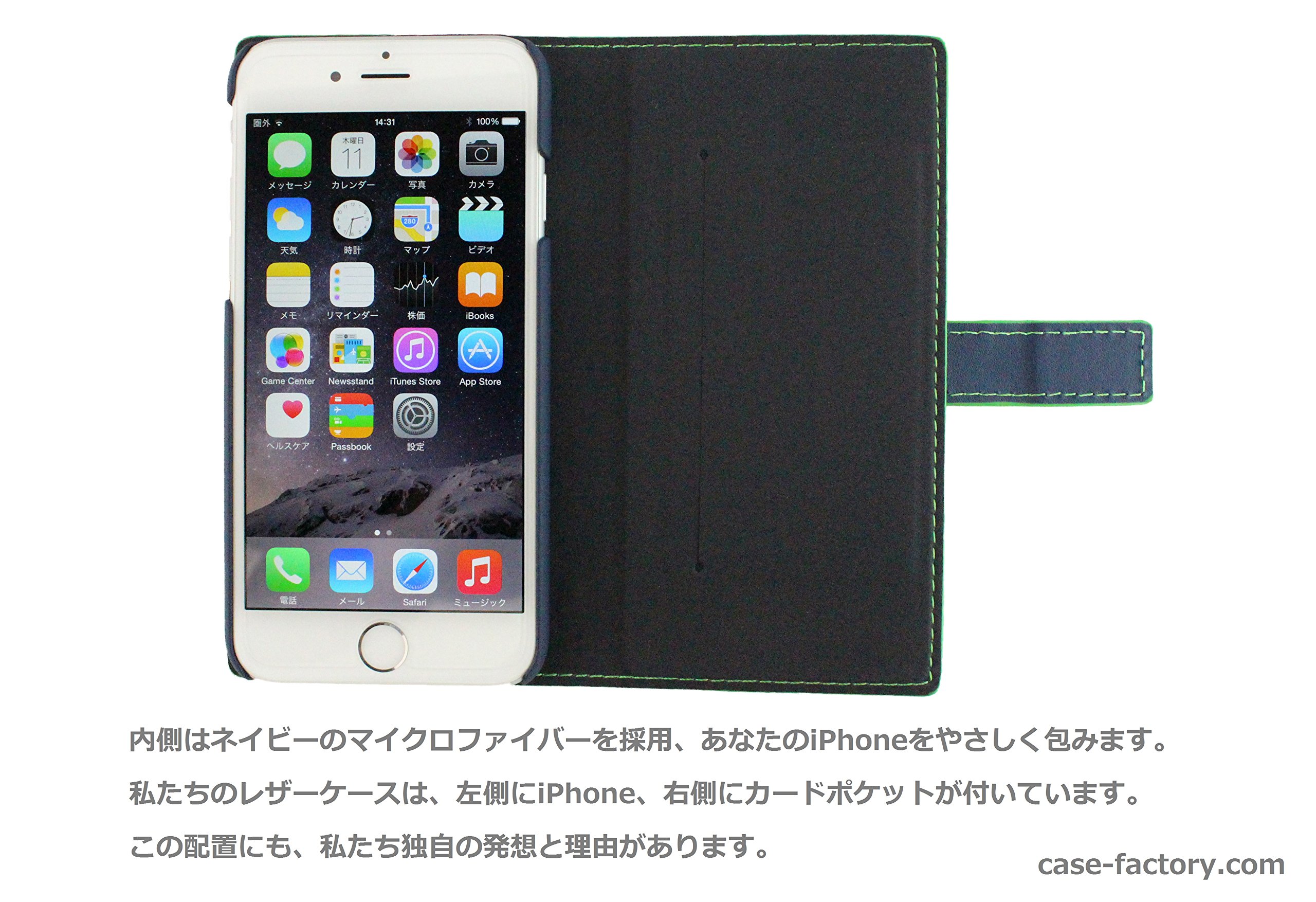 The interior adopts navy microfiber and gently wraps your iPhone.
