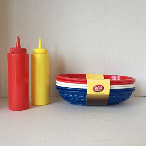 Patriotic 4th of July Party Bundle for 6, FIRE WIRE SS Flexible Grilling Skewer (Set of 2), Plastic Baskets, Condiment bottles, Dinner Plates, Lunch Plates,...