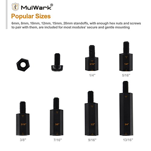 - VARIOUS SIZES FOR DIFFERENT USE: 6mm, 8mm, 10mm, 12mm, 15mm, 20mm standoffs, with enough hex nuts and screws to pair with them, are included for most modules’ secure and gentle mounting