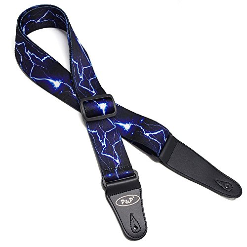 Art Attack Blue Lightning Does Strike Twice Energy Fire Jacguard Weave Music Electric Acoustic Bass Guitar Ukulele Strap