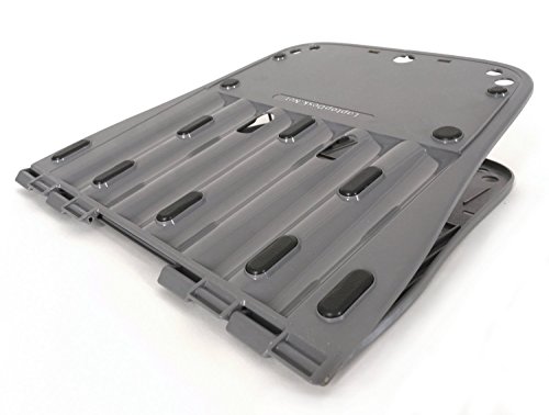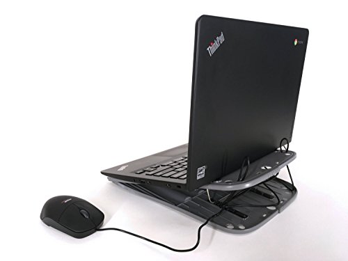 -. Feature : A flexible, thin and lightweight folding desk for laptops, notebooks, Chromebooks and 2-in-1's that are 5 pounds or less. Note: Includes only the lap desk. Notebook, mouse, blocks and weights shown in photos are for demonstration only. / Only 1/4 inch thick, the thinnest lap desk available, so it disappears into your notebook bag! Weighs 14oz. / Made of super strong polycarbonate, the space gray material that flexes but doesn't break! / Opens to a leg spanning 22" wide with 5x7" mousing/phone area on each side. Folds to 11x11 inch. / Easily converts into a desktop typing stand with 5 ergonomic typing angles and raises screen height by 3 1/4" closer to eye level.