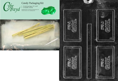 Cybrtrayd "It's a Girl" Business Card Chocolate Candy Mold with Packaging Bundle of 25 Cello Bags, 25 Gold Twist Ties and Chocolate Molding Instructions