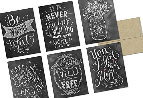 -. Title : 72 Note Cards - Chalkboard Inspiration - 6 Designs - Kraft Envelopes Included