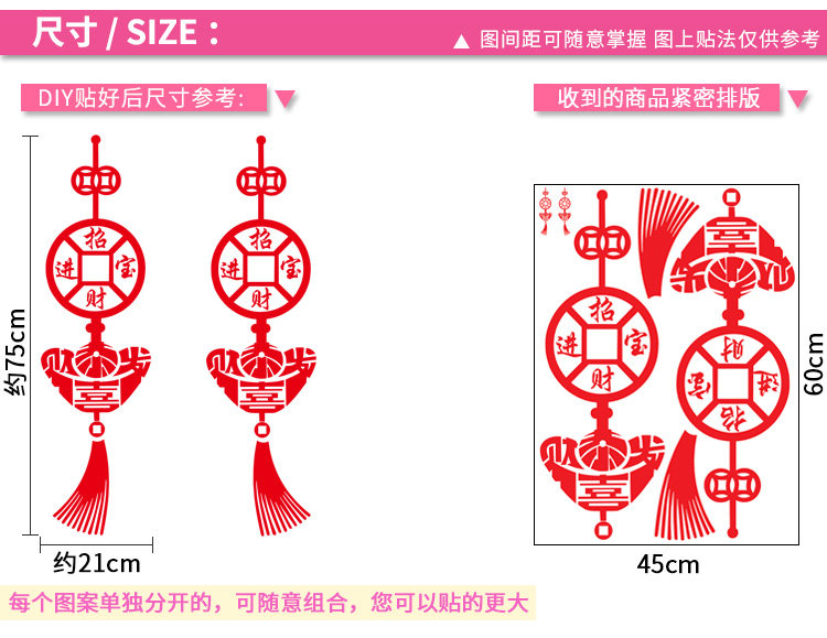 元旦春节贴画店铺商场门橱窗花玻璃贴纸过新年装饰品元宝墙贴