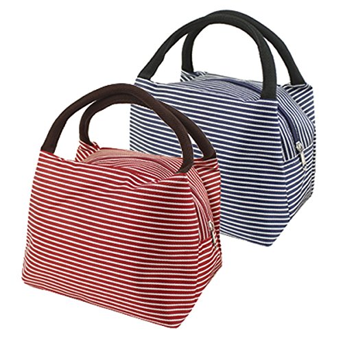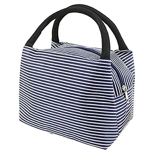 LEFV™ Lunch Bags Solid Useful Linen Cotton Stripe Fashion Tote Bag Grocery Handbag Travel Organizer Box Case Container Sundry Shopping Makeup Bags with Zipper, Deep Blue