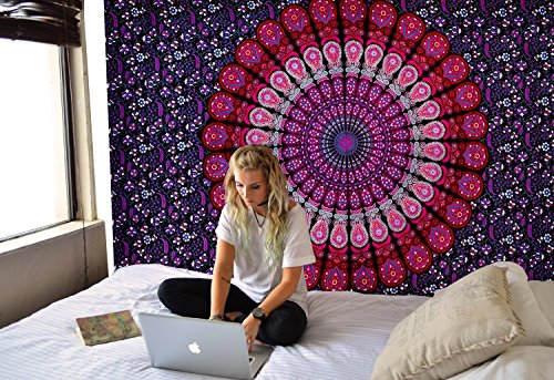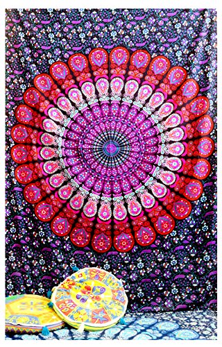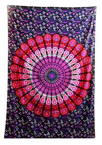 Studio : Anokhiart Publisher : Anokhiart Binding : Kitchen Product Description This gorgeous piece of art can be used as Bedspread, Bed Cover, Table Cloth, Curtain and of course as a Tapestry or a Wall Hanging. Add an ethnic feel to your room with this cotton handmade designs wall hanging. Go for a dramatic makeover of your wall and this tapestry would become a conversational piece of art. A must have in any season for all ethnic savvy ones. This is a rare beauty not to be missed, a genuine collector's item and the result of masterly workmanship. These Tapestries are completely printed in traditional Indian method and takes around a week to complete. 100% Cotton This tapestry are printed, not quilted or woven. They are hippie Indian tapestries. 0