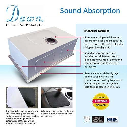 Dawn SRU251610 Undermount Small Corner Radius Single Bowl Sink, Polished Satin