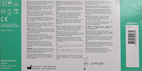 ReleaseDate : 2015-08-05 Studio : Abena Publisher : Abena Binding : Health and Beauty Product Description Abena vinyl exam gloves are lot controlled medical quality exam gloves that meet ASTM standards. Ideal for health care personnel w/acute sensitivity to powdered gloves. For unmatched quality and sensitivity, gloves provide superior comfort. -Non-Sterile. Available in small, medium, large or extra-large sizes. 0