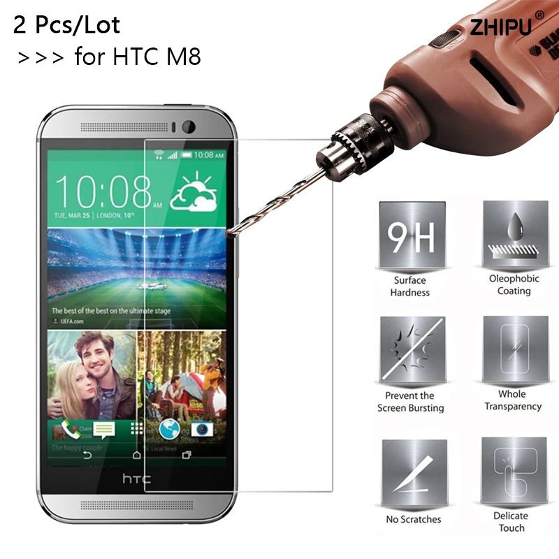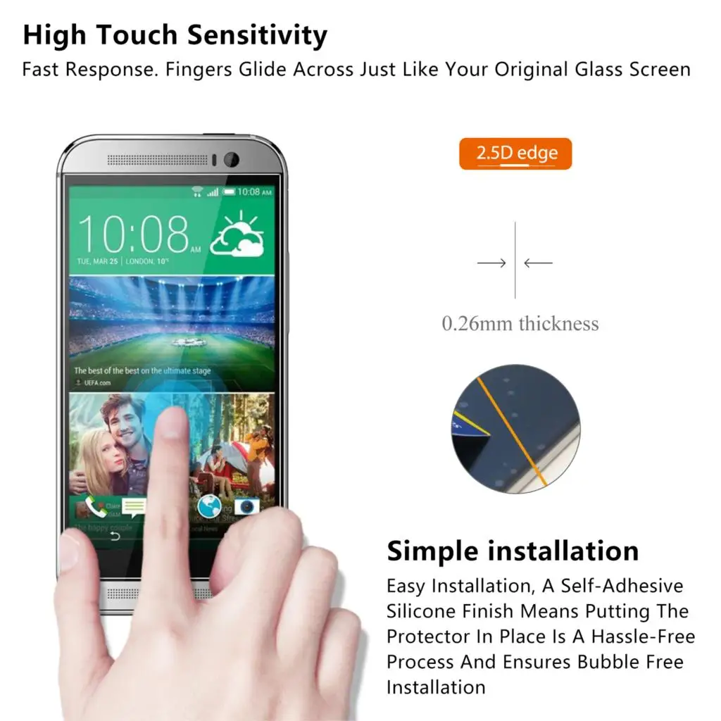 2 Pcs/Lot 2.5D 0.26mm 9H Premium Tempered Glass Screen Protector For HTC One 2 M8 Toughened protective film