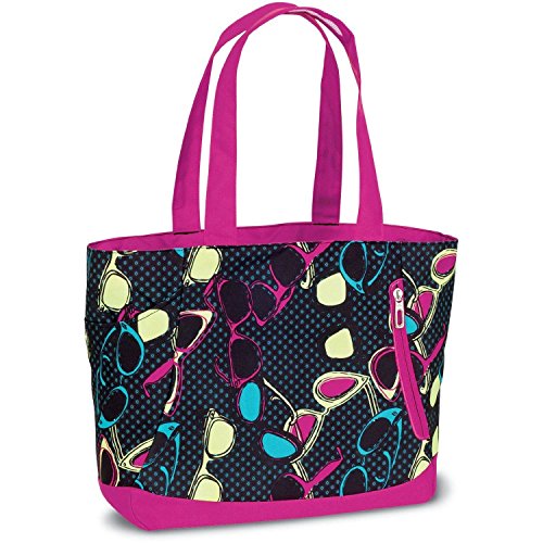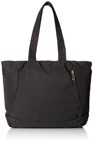 Amazon.com A shopping day or work commute is made easy with the Shelby Tote--a large tote with a zippered main compartment that fits a 15-inch computer. There's plenty of organization inside, with an open cell phone pocket, side water bottle pocket, a zippered accessory pocket, and a large, deluxe multi-pocket organizer with key fob. The carrying handles can be used as shoulder straps and the padded bottom protects whatever you put in. Features: - Large, zippered main compartment