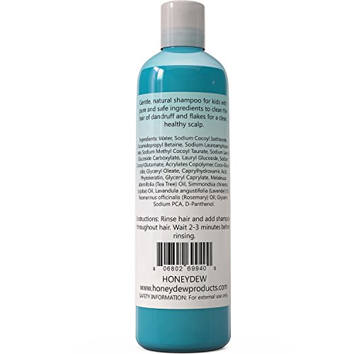 - Feature : The best all natural dandruff shampoo for kids available! Gentle treatment for children of all ages contains pure and safe ingredients to clean the hair of dandruff and flakes with a premium formula containing therapeutic grade Jojoba Oil along with Tea Tree and Lavender essential oils / Nurturing hypoallergenic formula developed especially for children with mild ingredients nourishes, cleans and protects dry and damaged hair while providing effective anti-dandruff properties to naturally promote scalp health and reduce dandruff and flaking / Best haircare product for growing boys and girls of all hair types, ranging from curly and frizzy to thin and fragile hair. Compatible with any conditioner and safe for daily use / Tear free shampoo provides an organic moisturizing treatment for childrens hair and scalp. Sulfate free and paraben free formula contains no artificial fragrances, colors or harsh ingredients generally found in most commercial medicated shampoo / Manufactured in a state-of-the-art facility in the USA which exceeds all GMP standards. Natural, effective and formulated especially for kids, Honeydew Products Dandruff Shampoo for Kids is assured to exceed expectations in quality and effectiveness - 100% money-back guaranteed!